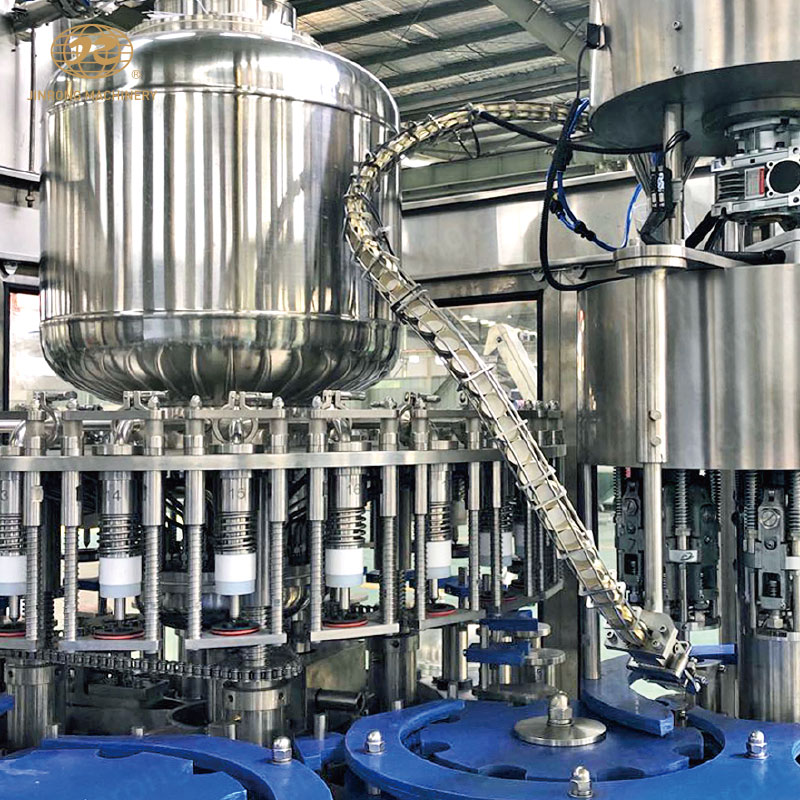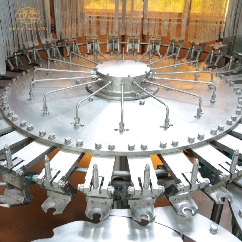 金榮機械主導產品有沖瓶灌裝旋蓋三合一機組、灌裝旋蓋二合一機組、灌裝封口二合一機組、全自動吹瓶機、加侖桶裝系列機組、水處理生產線、自動就地清洗系統、各種殺菌成套設備、沖瓶灌裝封口生產線、果汁果茶飲料成套設備等